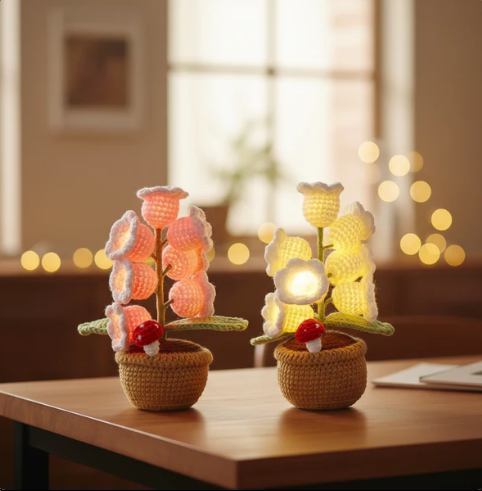Each crochet flower is carefully crafted to bring warmth and charm to any room. Soft glow, gentle color, and made to last.
